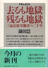三池炭鉱労働者の二十年。鎌田慧著。フリー・ルポライター。1986年9月24日ちくま文庫発行。購入。