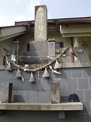「與洲奥都城」の碑と納骨堂。第二の故郷とした大牟田のその祭壇には石炭が供えられていた。