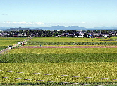 来たときは気がつかなかったが、帰りの高尾野駅から眺める向こうに、青く広がる海を見た。「あれが八代海か」。