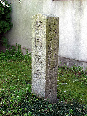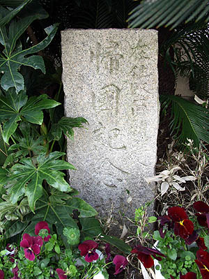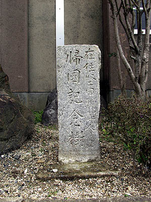 表「歸国記念」、右横「一九六〇年七月植樹 膳所學區内朝鮮人歸国者一同」。大きさ66×15。