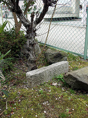 表「歸国記念」、右横「一九六〇年七月植樹 膳所學區内朝鮮人歸国者一同」。大きさ70×15。