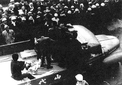 昭和35年3月29日午後5時頃、熊本県荒尾市大島 四山鉱正門前でピケを張っていた三池労組の