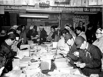 ![]() 昭和35年4月7日、組合本部を2000人の警官で包囲し、同時に5箇所の支部も一斉に捜索した。