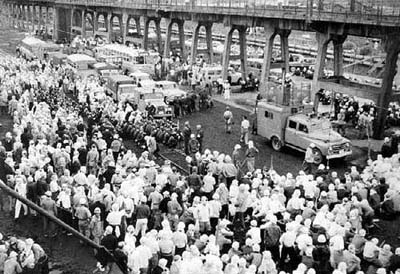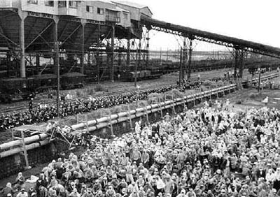 昭和35年7月8日、福岡地裁は、三井鉱山の申請どおり、組合員等のホッパー周辺および港務所 中央指令所への立入禁止仮処分命令を出した。それは、ピケ小屋24棟すべてを24時間以内に除去せよというものであり、労働 者の団結を認めない当時の裁判所の立場を表してもいた。しかし、大量の警察官に守られホッパー周辺への立入禁止仮処分を 執行しようとした執行吏も、三池労組のピケに阻まれ結局退去せざるを得なかった。