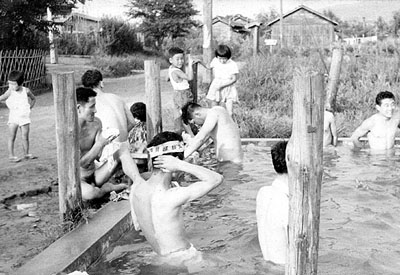 ![]() 緑ヶ丘敷島町社宅の防火用水プールで水浴するオルグの人たち