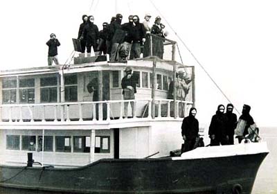5日午前3時過ぎ、340人の第2組合員を乗せた中型客船など4隻は、佐賀県大浦港を出港、午前5時半、南新開縦坑岸壁に着い