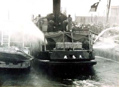 労組側は木造船。当然木造船が不利だった。