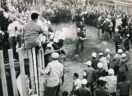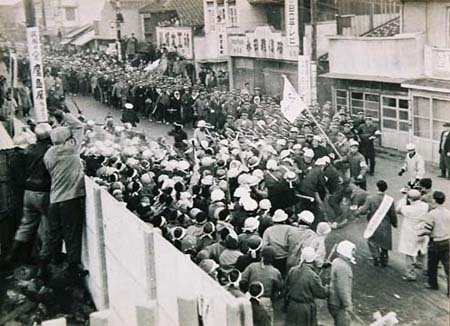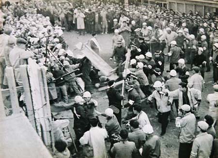 らと激しい乱闘となった。会社側職員も塀の内側から投石するなどして応援。第1、第2の双方合わせて115人の重軽傷者が出た。