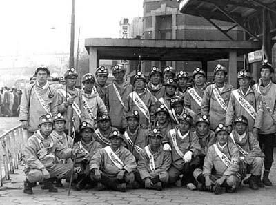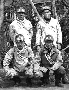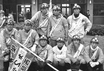 昭和37年11月20日、石炭政策転換闘争のため上京。その通産省前における西部第5大隊第21中隊第2小隊3班。