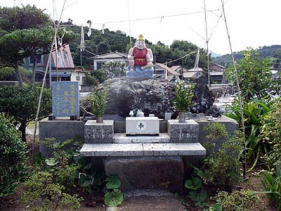 恵比寿さんの横には、いつまでも美しい海であることを祈るかのように、サンゴが供えられてあった。その側に