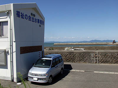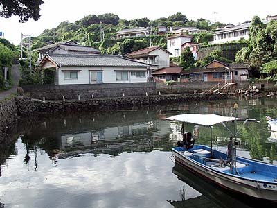 徒歩30分ほどの所に名護港がある。ここは鹿児島県出水市。そして海沿いに「水俣病出水の会」事務所が建つ。 |