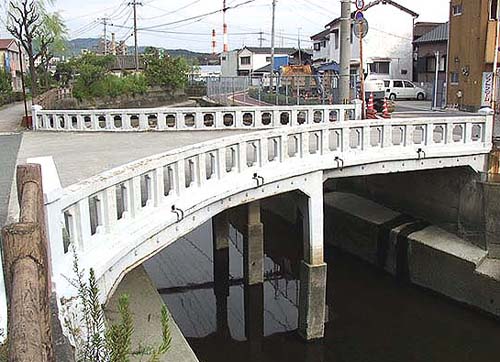 大牟田川に架かる「泉橋」。大正5年竣工。大牟田市内初のコンクリート橋。そのデザインに 特徴がある。 「山ノ上の医局」と呼ばれていた三井医院への通路として利用 されていた。その影響か、この辺りには薬局店が多く見られる。 かつて大牟田川は、「燃える川」あるいは「七色の虹の川」と呼ばれていた時代があった。その頃の大牟田川は、垂れ流 されていた付近工場廃水の油でギラギラと光り、まさしく虹色であったという。そして時々川の中を火が走り、「燃える川」 としても有名だった。