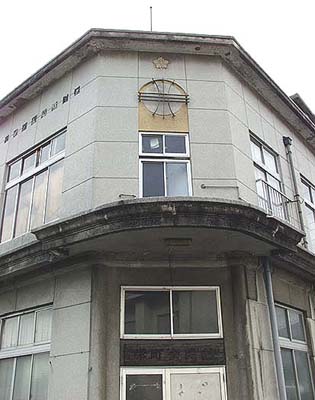 (2003年9月22日撮影) 旧交番。栄町信号付近の大牟田川沿いに建つ。うすっぺらな今風の交番が多くなった中で、 このような威厳ある交番はもう見られなくなった。現在は栄町公民館として再利用されている。