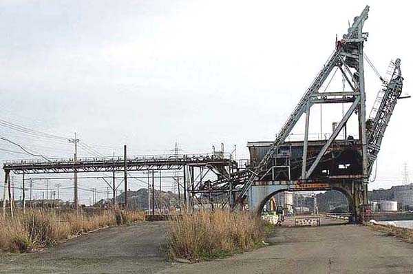 三池式快速石炭船積機3号機(通称 ダンクロ・ローダー)。 明治44年製。團琢磨が米国の選炭機にヒントを得て、三池炭鉱の技術主任と共同で設計。三池港に三池炭鉱専用鉄道で運ばれてきた 石炭はバケットに落とされてそのままダンクロ・ローダーで船積みされた。当時は移動用レールで岸壁沿いを移動したが、現在は固定 されている。開港当時は1号機と2号機の2つがあったが現在は撤去されており、この3号機が唯一現存している。しかしこの3号機もま たいずれ撤去されることになるかも知れない。保存が望まれる。