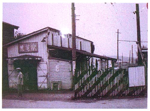 わずかに鉄路時代の橋が残る(2004年8月1日撮影) 目前がJR鹿児島本線。右へ進行した所に荒尾駅がある。(2004年8月1日撮影) 荒尾市電 荒尾駅(「荒尾市交通局56年のあゆみ」より) JR鹿児島本線 荒尾駅(2004年8月1日撮影)