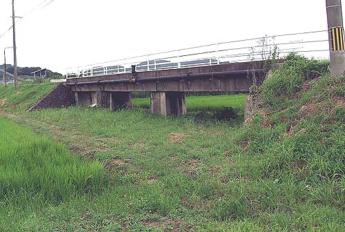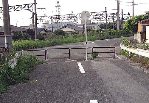 (2004年8月1日撮影) わずかに鉄路時代の橋が残る(2004年8月1日撮影) 目前がJR鹿児島本線。右へ進行した所に荒尾駅がある。(2004年8月1日撮影) 荒尾市電 荒尾駅(「荒尾市交通局56年のあゆみ」より) JR鹿児島本線 荒尾駅(2004年8月1日撮影)