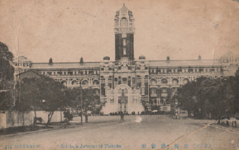写真左は日本人が設計建築した「台湾総督府」の写真絵はがき。父のアルバムにあった。1895(明治28)年建築。現在もそのまま台北市に建ち、使われている。