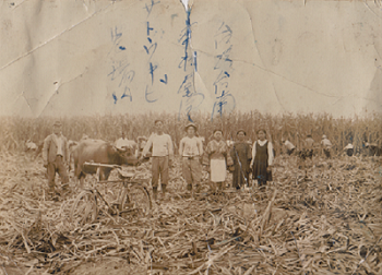 台湾で取り寄せた戸籍謄本には「臺中州北斗郡沙山庄草湖、昭和拾壱年参月弐拾日寄留」とあり、現在の彰化縣芳苑郷文津村へ日本の香川県綾歌郡林田村から一家(10人)で開拓民として移り住んだ。その集合写真の右端に、私の母方祖父の名が記されてある。この時、母は18歳。間もなく、臺中市千歳町一丁目4番地の照山医院へ妹と二人、女中として働きに出た。なお、母の一番目の弟・常治郎は昭和18年臺中市旭町三丁目2番地において20歳で病死した。