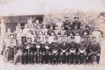 場所は「秋津國民学校」。現在の彰化縣芳苑郷文津村に建つ「草湖國民小学」の前身。2019年12月3日、私は同校を訪問。その時に見せてもらった「永久保存 紀念寫眞帖 草湖國民学校」と記した写真帖の中に、同じ写真があった。その前から二列目、右から三人目の少年が母の2番目の弟(当時12歳)。
