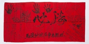 赤旗(80×67) 闘争で逮捕された江嶋氏を激励するため贈られた。 |
